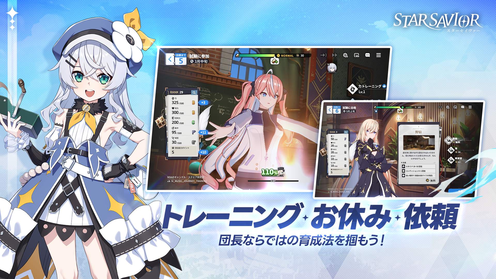 ステラアーカイブは『スターセイヴァー』における育成の核です。まずは力・体力・忍耐・集中・保護という5つの主要ステータスをトレーニングで伸ばし、試験突破を目指します。 ステラアーカイブは『スターセイヴァー』における育成の核です。 力・体力・忍耐・集中・保護の5つの主要ステータスをトレーニングで伸ばし、試験突破を目指します。 トレーニングは回数制で、スタミナとコンディションの管理次第で成功率が変動します。プレイ中の選択やイベントで育成ボーナスが発生し、好感度アップも育成成果に影響を与えます。試験に合格すれば育成期間が延長され、さらなる強化が解放される設計です。