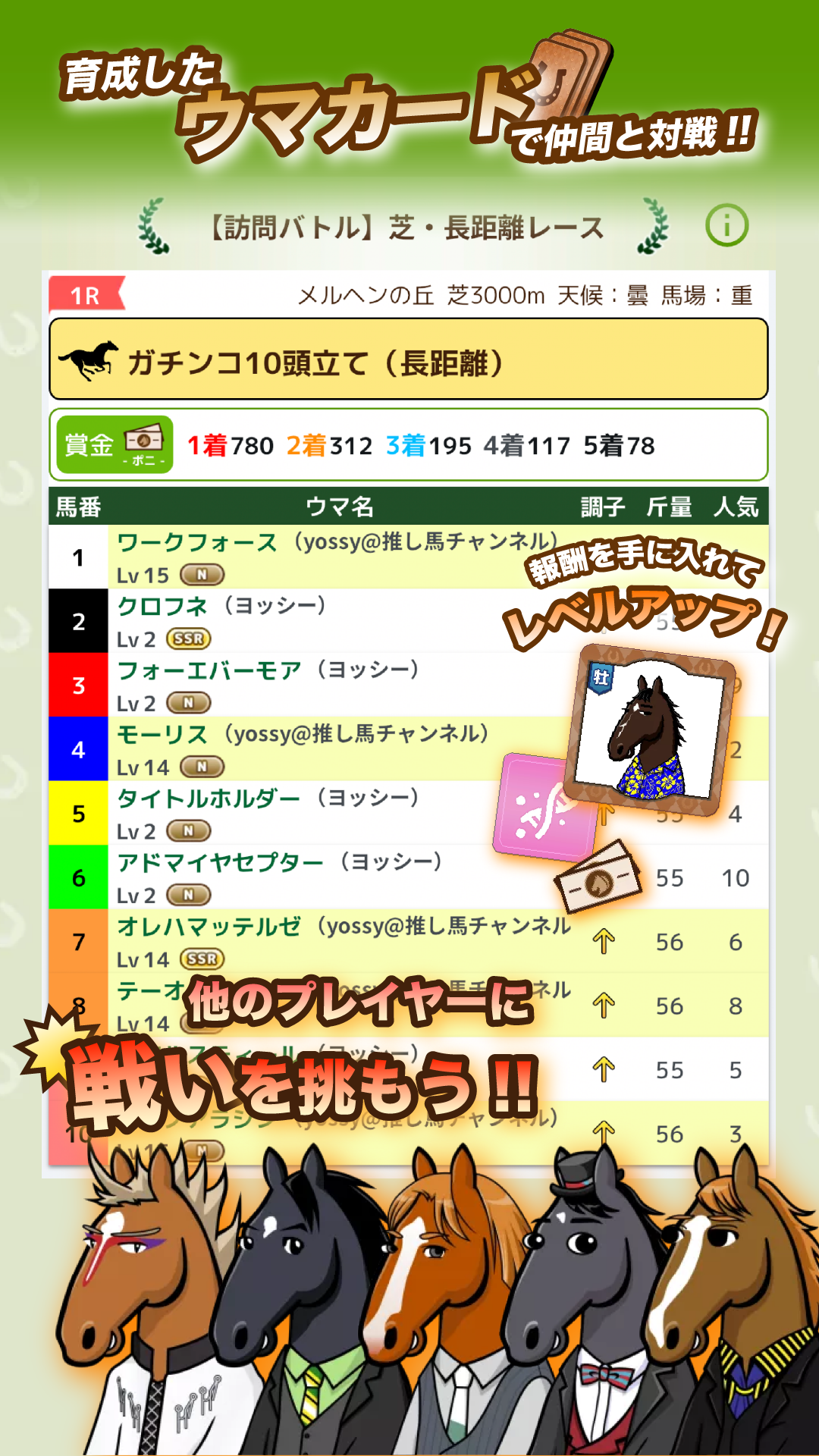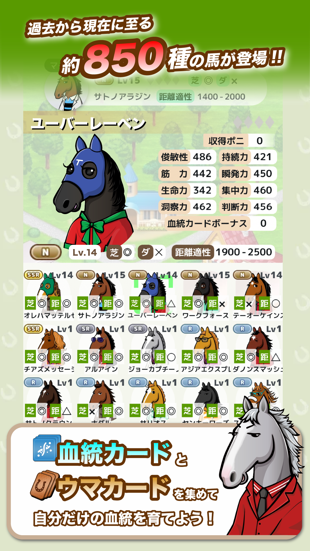 牝系ランキングや血統・戦績データをまとめて閲覧できるデータベース機能も備わっていて、育成の方針を立てる際に大いに役立ちます。推し馬を中心に“ウマカード”ライフを組み立て、好きな馬を育てる楽しさが深まるプラットフォームです。対応端末はiOS・Android・Webで、基本プレイは無料。アプリ内課金でさらに豊富な要素を手に入れられます。